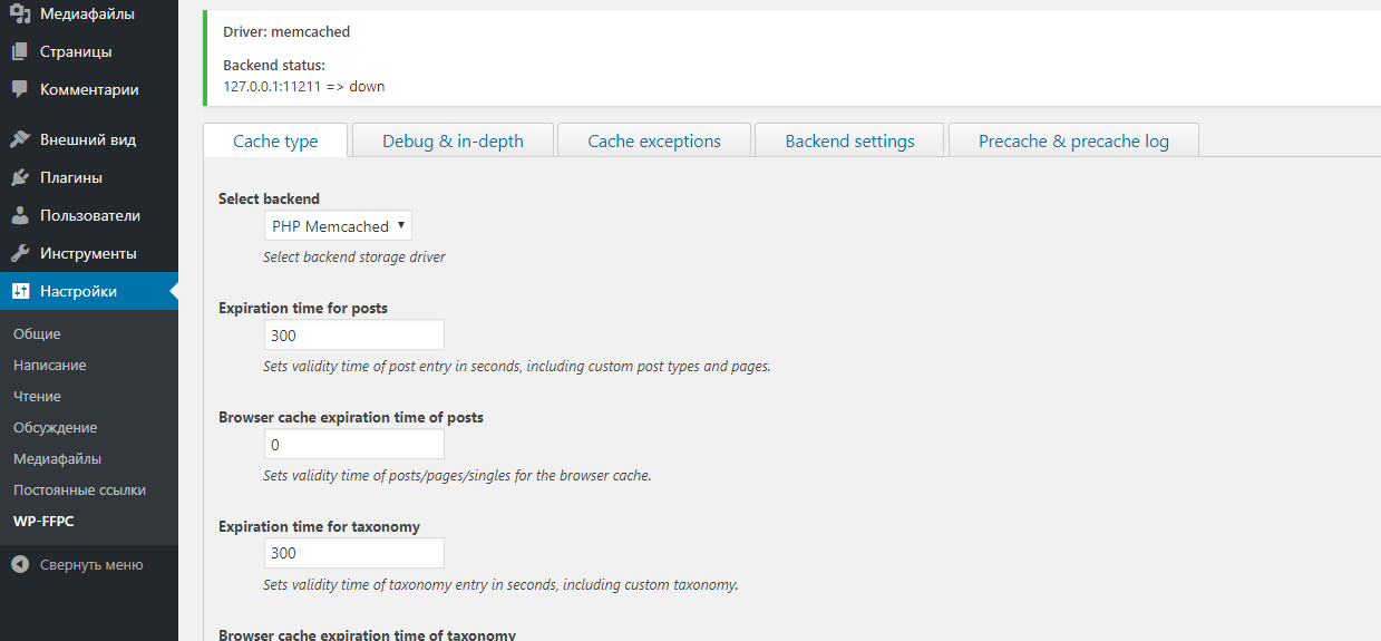 На этом подготовка со стороны системы завершена. Переходим к установке плагина «WP-FFPC» для WordPress.